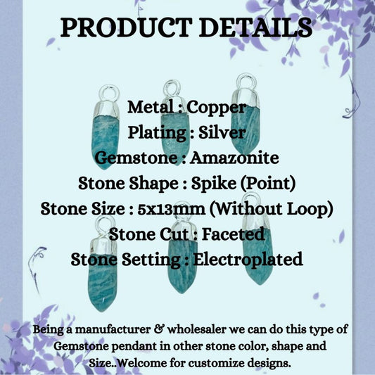 Elegant Amazonite Spike Pendant Silver Capped Natural Birthstone Charm for Boho Chic & Minimalist Jewelry – Selling Per Piece