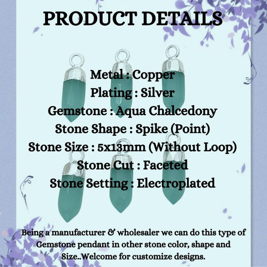 Aqua Chalcedony Spike Pendant with Silver Finish Unique Healing Stone Charm for Handmade Spiritual Jewelry – Selling Per Piece