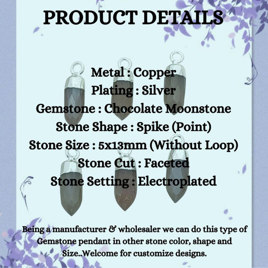 Silver Electroplated Chocolate Moonstone Spike Pendant Raw Healing Gemstone Charm for Boho Chic Jewelry Designs – Selling Per Piece