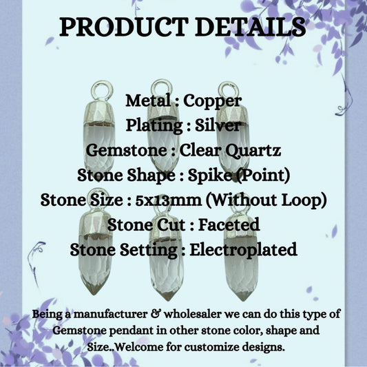 Elegant Clear Quartz Spike Point Pendant with Silver Plating Natural Birthstone Charm for Handmade Jewelry Makers – Selling Per Piece