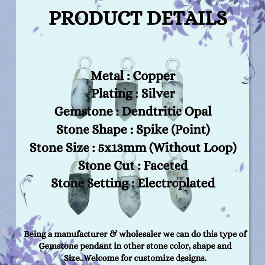 Dendritic Opal Spike Pendant with Silver Finish Unique Healing Stone Charm for Handmade Spiritual Jewelry Creations – Selling Per Piece