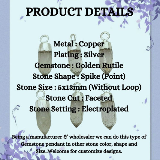 Faceted Golden Rutile Spike Pendant Silver Electroplated Cap Spiritual Gemstone Charm for Handmade Jewelry Designers – Selling Per Piece