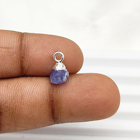 December Birthstone Tanzanite Pendant Raw Crystal with Silver Electroplated Cap for Minimalist Jewelry- Selling Per Piece