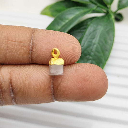 Rose Quartz Gemstone Pendant Raw Stone with Gold Electroplated Cap for Handmade Necklaces- Selling Per Piece