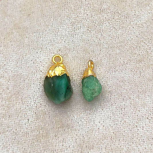 Handcrafted Raw Emerald Pendant Gold Electroplated Cap May Birthstone Charm for Boho Jewelry- Selling Per Piece