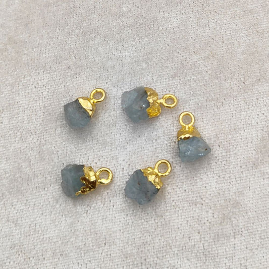March Birthstone Aquamarine Pendant Raw Blue Crystal with Gold Elecrtoplated Finish Cap for Handmade Necklaces- Selling Per Piece