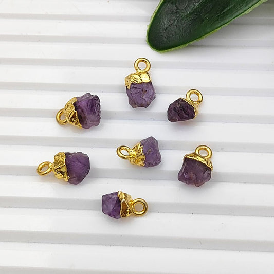 Natural Amethyst Crystal Pendant Raw Purple Gemstone Charm with Gold Electroplated Cap for Spiritual Jewelry- Selling Per Piece