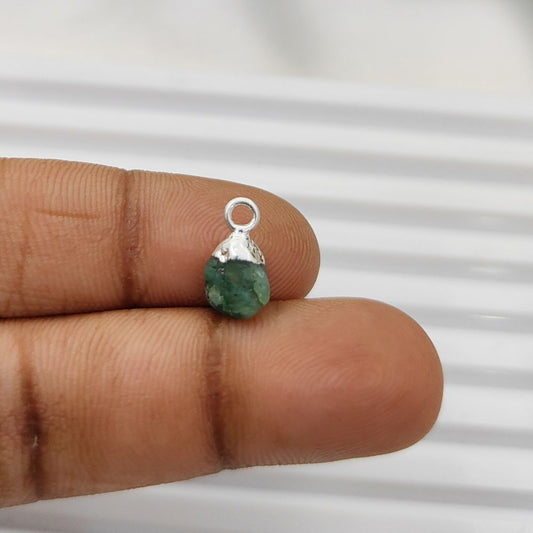 Silver-Electroplated Rough Emerald Pendant – May Birthstone Charm for Spiritual & Handmade Jewelry- Selling Per Piece