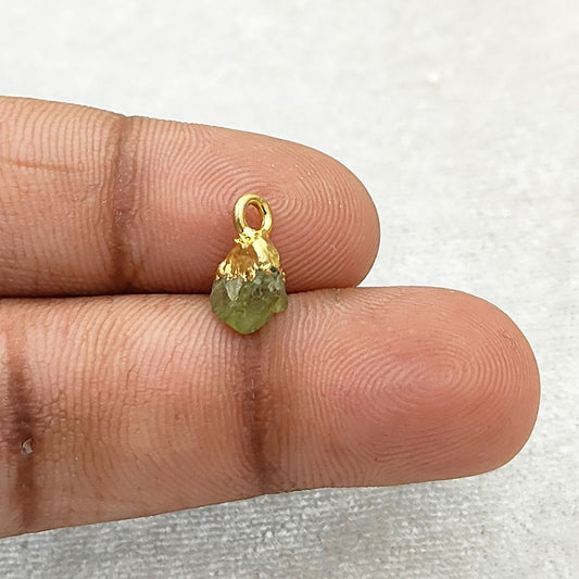 Natural Peridot Crystal Pendant Raw Gemstone with Gold Electroplated Cap for Boho Jewelry- Selling Per Piece