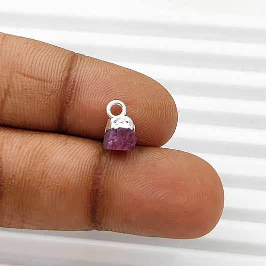 Natural Raw Ruby Crystal Pendant Silver Electroplated Capped Healing Stone for Handmade Jewelry Projects- Selling Per Piece