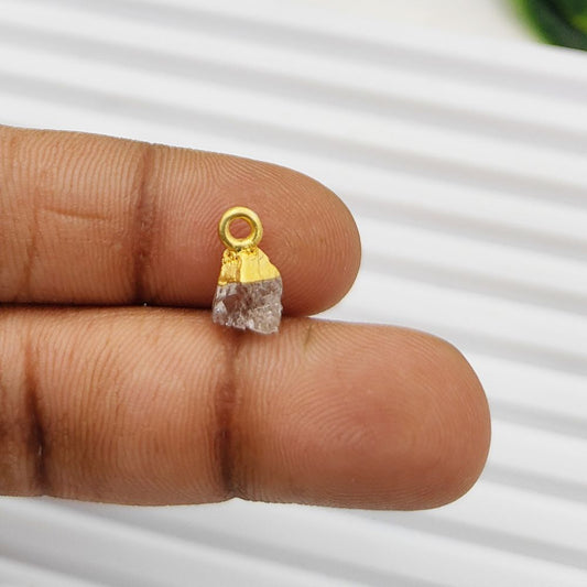 Raw Herkimer Diamond Crystal Pendant April Birthstone with Gold Finish Cap for Handmade Jewelry & Boho Accessories- Selling Per Piece