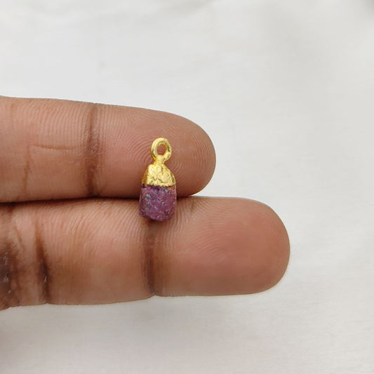 Natural Raw Ruby Crystal Pendant Gold Electroplated Capped Healing Stone for Handmade Jewelry Projects- Selling Per Piece