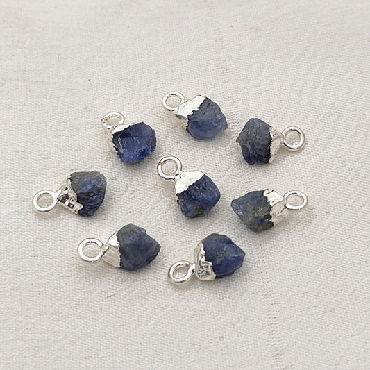 September Birthstone Sapphire Pendant Raw Crystal with Silver Electroplated Cap for Spiritual Jewelry- Selling Per Piece