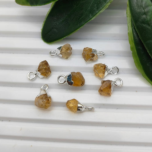 Silver Electroplated Cap Raw Citrine Pendant Handmade Gemstone Charm for DIY Necklace & Bracelet Projects- Selling Per Piece