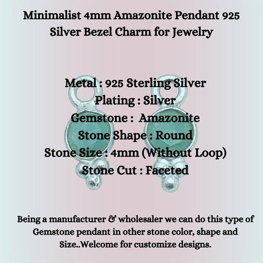 Minimalist 4mm Amazonite Pendant 925 Silver Bezel Charm for Jewelry