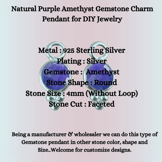 Natural Purple Amethyst Gemstone Charm Pendant for DIY Jewelry