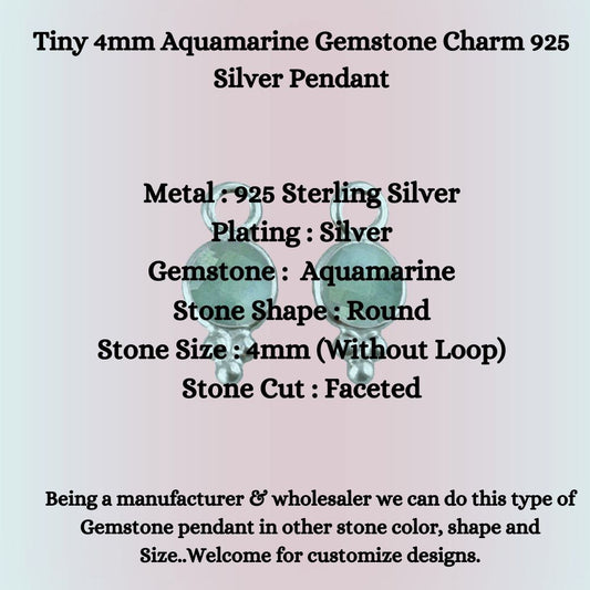 Tiny 4mm Aquamarine Gemstone Charm 925 Silver Pendant