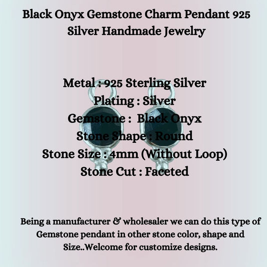 Black Onyx Gemstone Charm Pendant 925 Silver Handmade Jewelry
