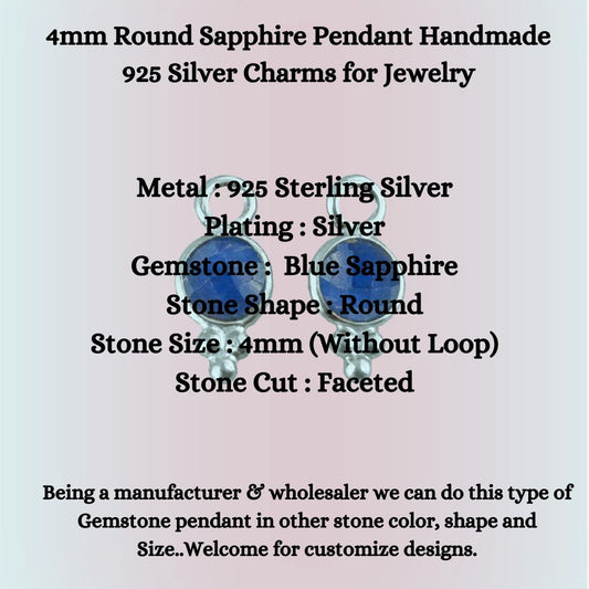 4mm Round Sapphire Pendant Handmade 925 Silver Charms for Jewelry