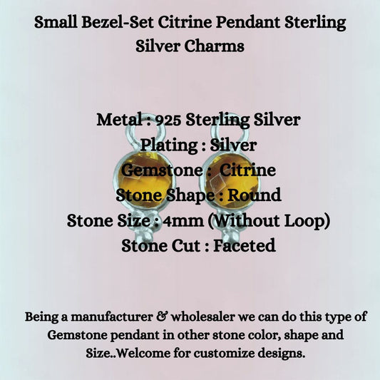 Small Bezel-Set Citrine Pendant Sterling Silver Charms