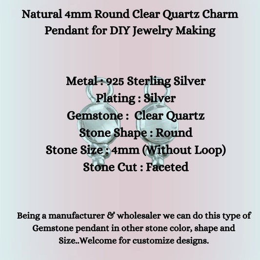 Natural 4mm Round Clear Quartz Charm Pendant for DIY Jewelry Making