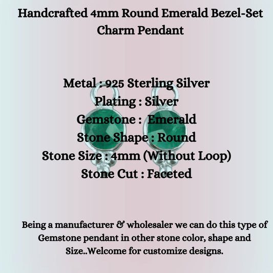 Handcrafted 4mm Round Emerald Bezel-Set Charm Pendant