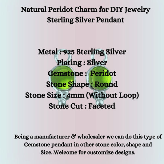 Natural Peridot Charm for DIY Jewelry Sterling Silver Pendant