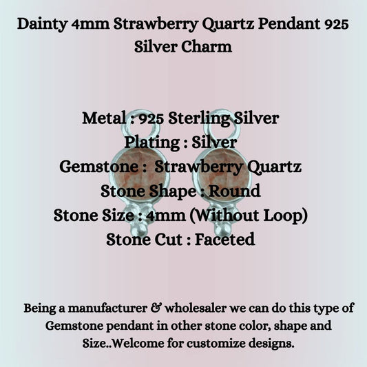 Dainty 4mm Strawberry Quartz Pendant 925 Silver Charm
