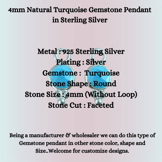 4mm Natural Turquoise Gemstone Pendant in Sterling Silver