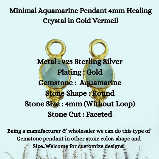 Minimal Aquamarine Pendant 4mm Healing Crystal in Gold Vermeil