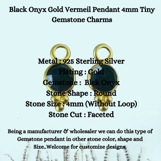 Black Onyx Gold Vermeil Pendant 4mm Tiny Gemstone Charms