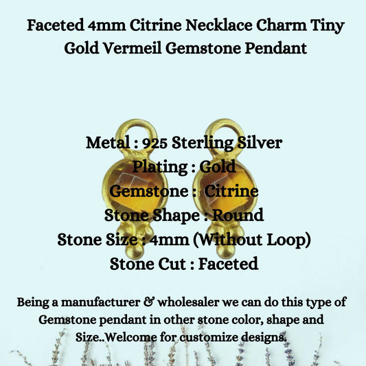 Faceted 4mm Citrine Necklace Charm Tiny Gold Vermeil Gemstone Pendant