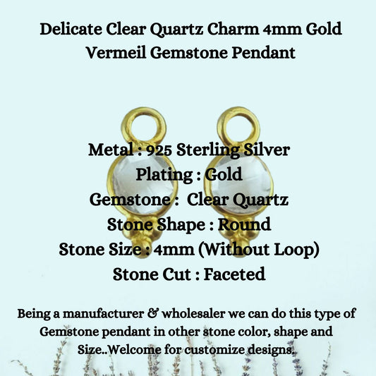 Delicate Clear Quartz Charm 4mm Gold Vermeil Gemstone Pendant