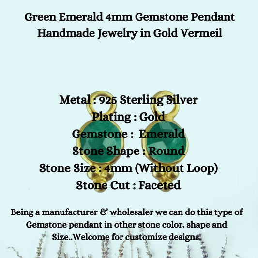 Green Emerald 4mm Gemstone Pendant Handmade Jewelry in Gold Vermeil