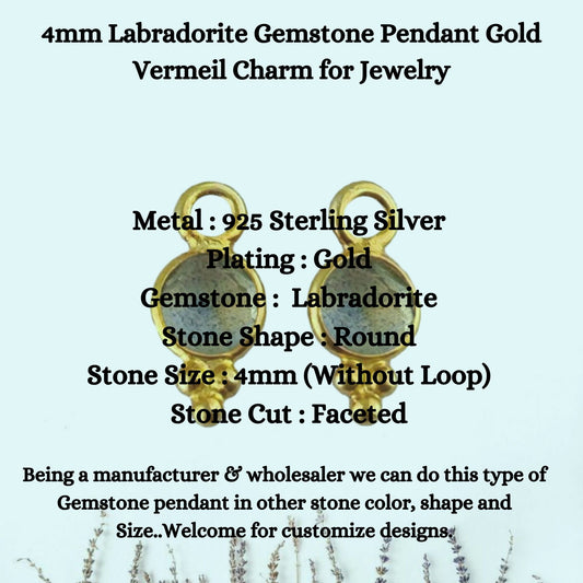 4mm Labradorite Gemstone Pendant Gold Vermeil Charm for Jewelry