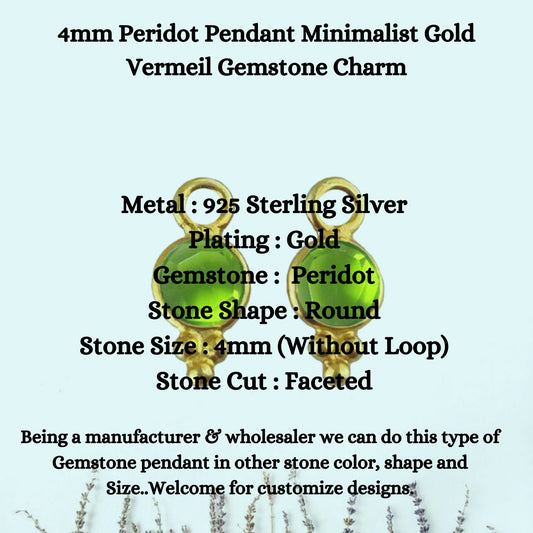 4mm Peridot Pendant Minimalist Gold Vermeil Gemstone Charm
