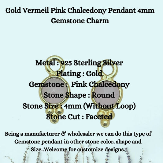 Gold Vermeil Pink Chalcedony Pendant 4mm Gemstone Charm