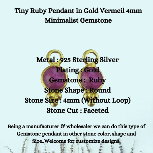 Tiny Ruby Pendant in Gold Vermeil 4mm Minimalist Gemstone