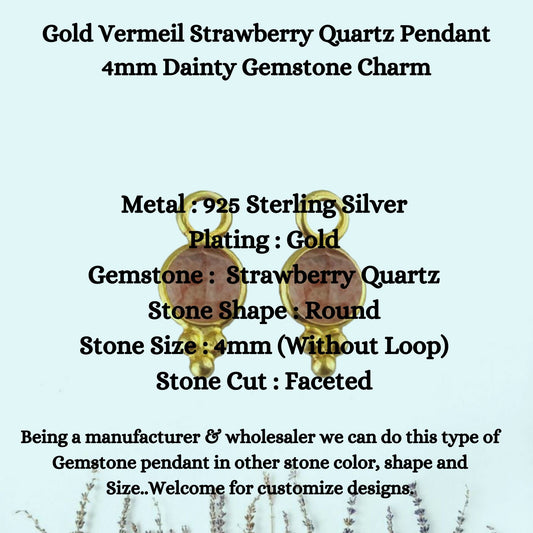 Gold Vermeil Strawberry Quartz Pendant 4mm Dainty Gemstone Charm