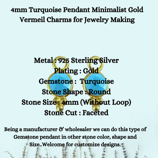 4mm Turquoise Pendant Minimalist Gold Vermeil Charms for Jewelry Making