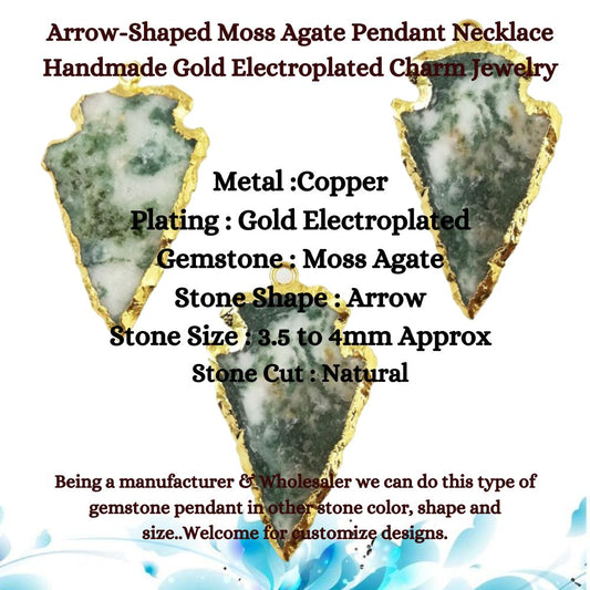 Arrow-Shaped Moss Agate Pendant Necklace Handmade Gold Electroplated Charm Jewelry For Women- Selling Per Piece