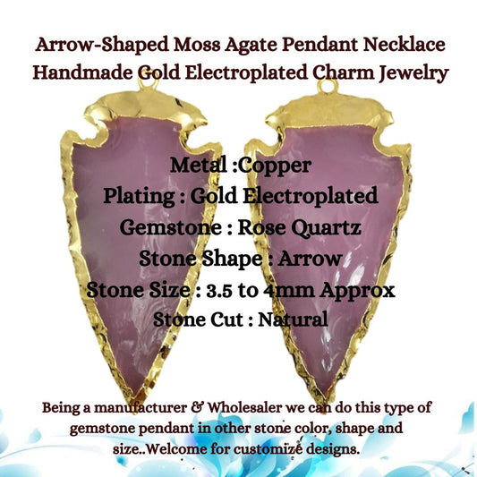 Rose Quartz Arrow Shaped Gemstone Pendant Necklace Gold Electroplated Birthstone Minimalist Jewelry- Selling Per Piece
