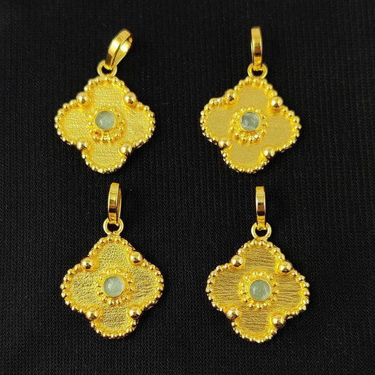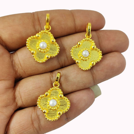 Birthstone Clover Handmade Pendant in Gold Plated Finish Handmade Round Cab White Pearl Jewelry-Selling Per Piece