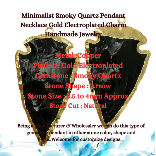 Minimalist Smoky Quartz Pendant Necklace Gold Electroplated Charm Handmade Jewelry for Women- Selling Per Piece