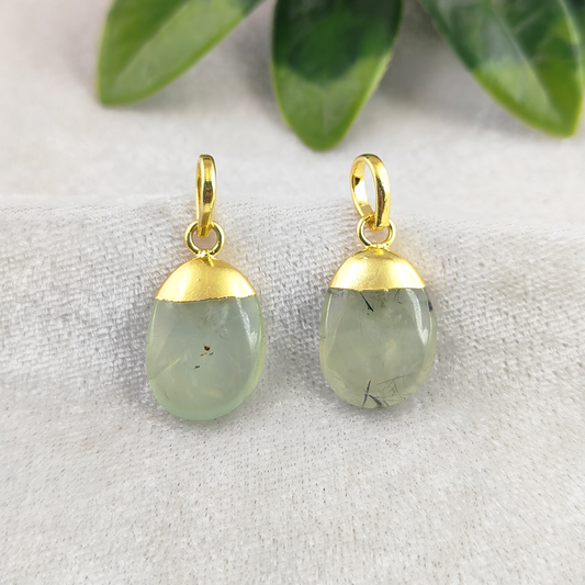 Green Prehnite Gemstone Tumble Pendant Necklace Handmade Dainty Minimalist Jewelry for Women- Selling Per Piece