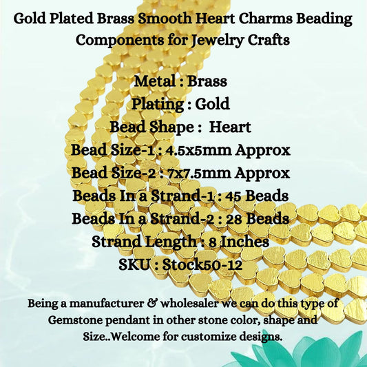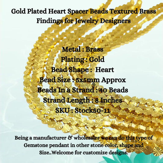 Gold Plated Heart Spacer Beads Textured Brass Findings for Jewelry Designers