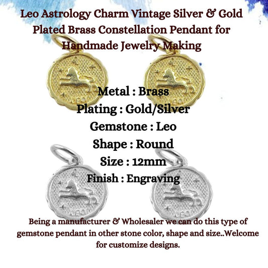 Leo Astrology Charm Vintage Silver & Gold Plated Brass Constellation Pendant for Handmade Jewelry Making- Selling Per Piece