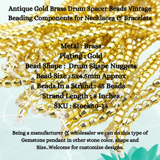 Antique Gold Brass Drum Spacer Beads Vintage Beading Components for Necklaces & Bracelets