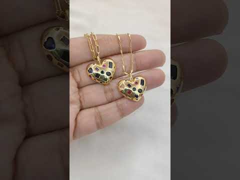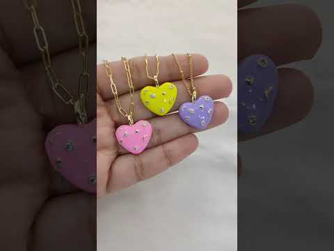 Handmade 18K Gold Filled Love Heart Necklace Colorful Micropavé CZ Textured Pendant for Women – Selling Per Necklace