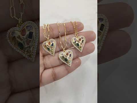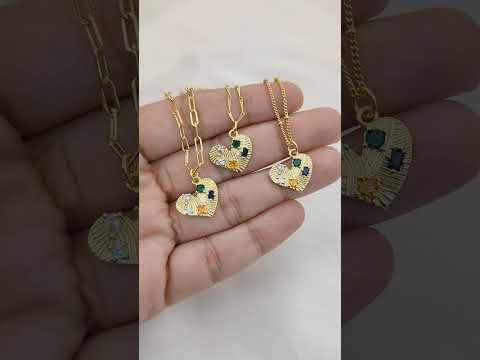 Multicolor CZ Heart Necklace in 18K Gold Filled Handmade Micro Pavé Love Pendant for Women – Selling Per Necklace